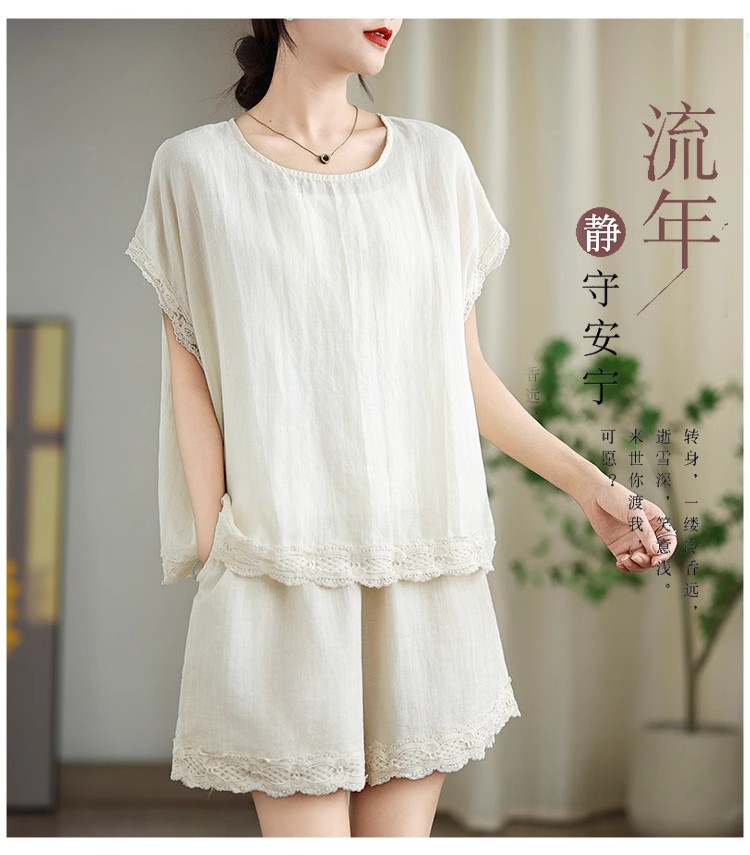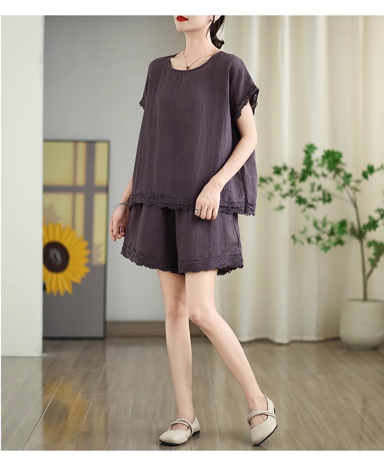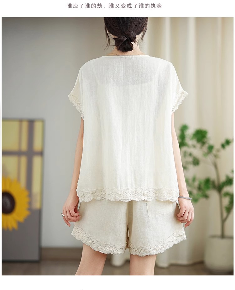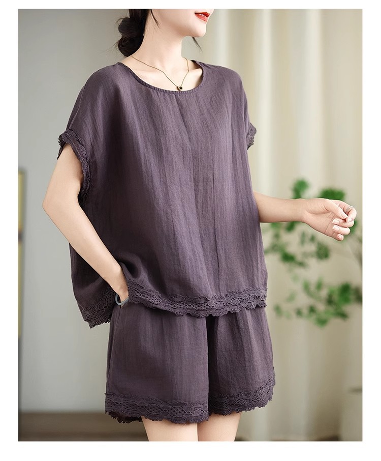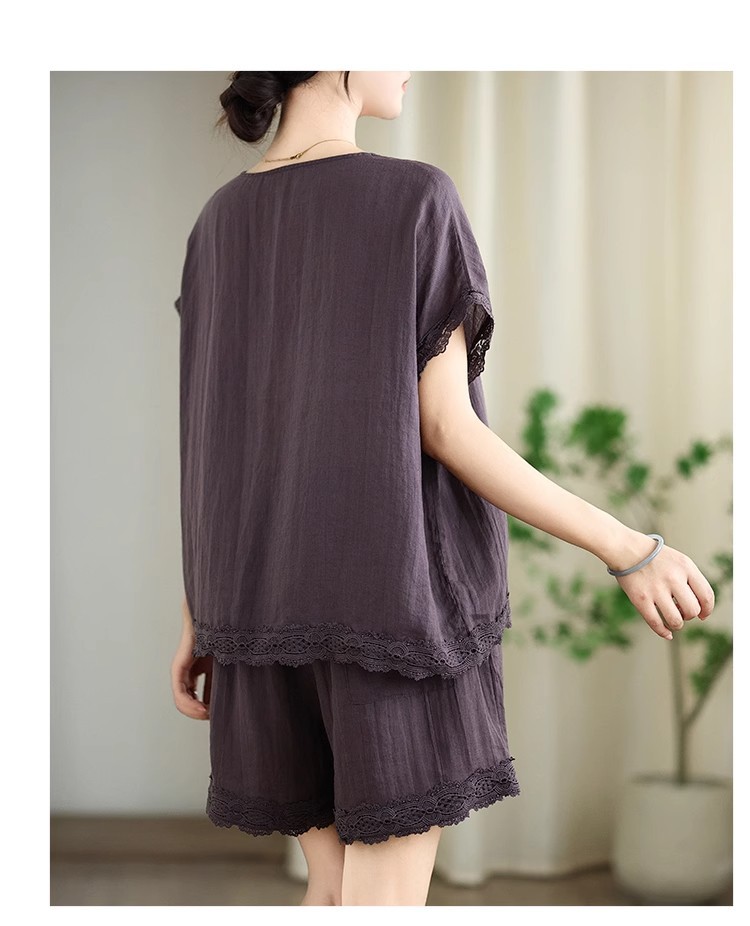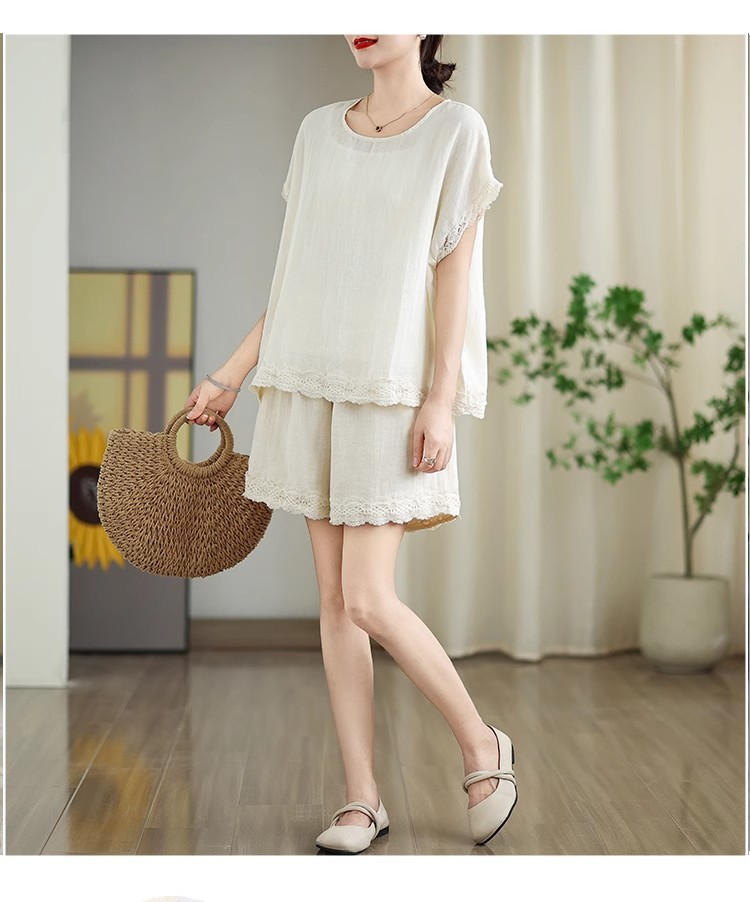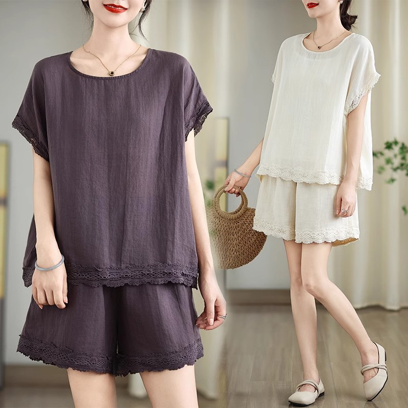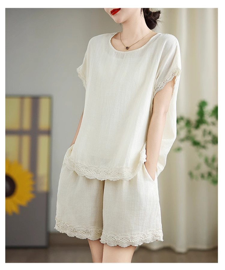 Loose-fitting Slimming Lace-trimmed Two-piece Set