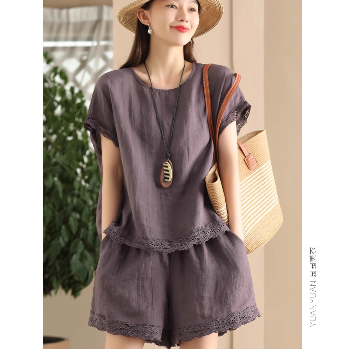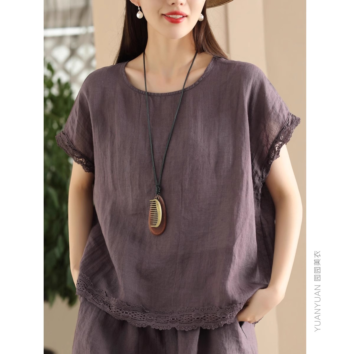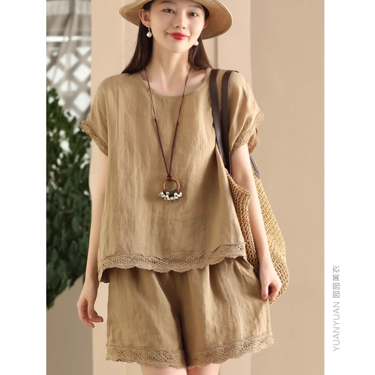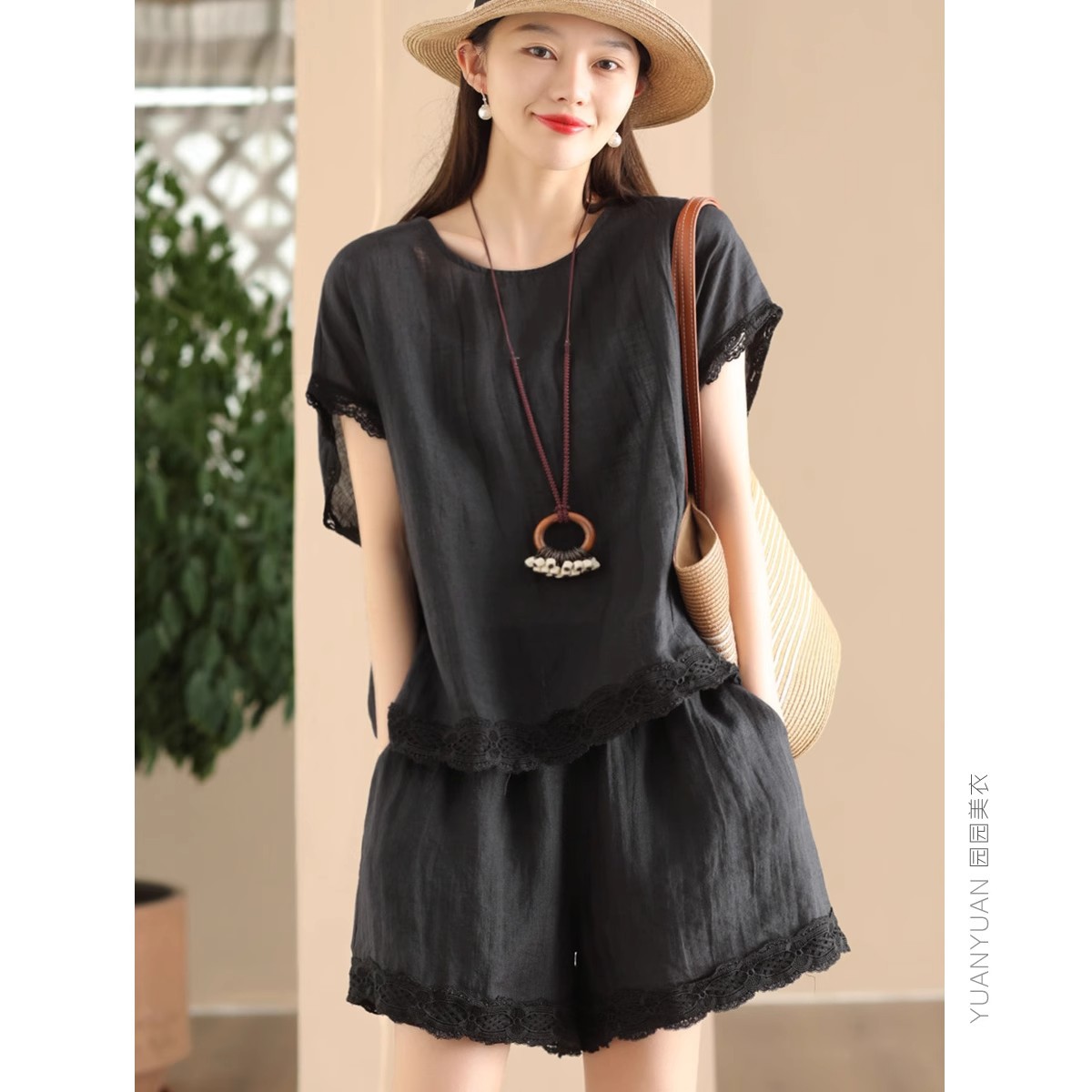 Loose-fitting Slimming Lace-trimmed Two-piece Set